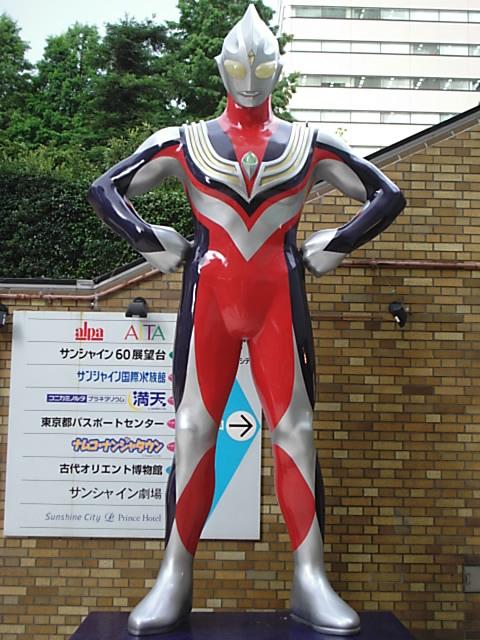 サンシャインに立つウルトラマンティガ。